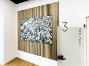 Die Auswahl der Motive folgt der räumlichen Struktur der Praxis: Jeder Raum ist einer Stadt zugeordnet, deren Aufnahme vor Ort zu sehen ist. Die Arbeiten sind damit integraler Bestandteil des Gesamtkonzepts.